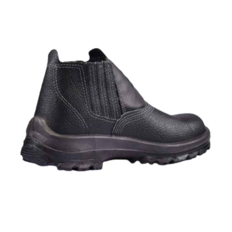 Seu fechamento em elástico lateral proporciona praticidade no calce e ajuste anatômico ao pé. Indicada para uso em ambientes industriais, construção civil, oficinas e áreas que exigem segurança reforçada contra quedas de objetos e escorregões.