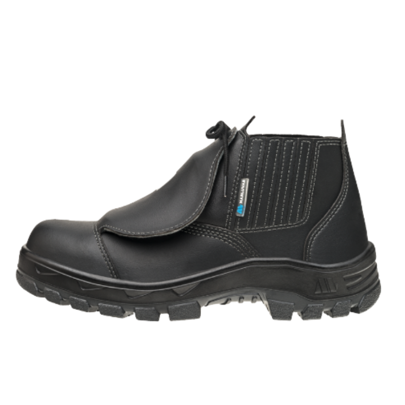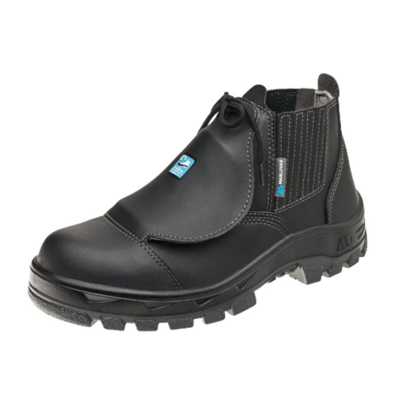 Solado: Constituido de duas camadas de poliuretano (PU), injetado diretamente no cabedal, sendo a 1º camada (entressola) mais macia e leva, com densidade de 0,4g/cm³ proporcionando maior conforto; e 2ª camada (sola) mais compacta com densidade de 1,0g/cm³, resistente a abrasão com sistema antiderrapante constituído de ranhuras especiais de 3mm de altura e 6mm de largura e resistência ao escorregamentoem pisocerâmicoe pisode aço (NívelSRC).