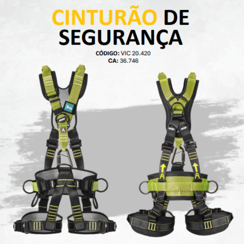Ideal para uso em conjunto com talabartes e dispositivos de ancoragem certificados, o Vic20420 U atende às exigências das normas vigentes para segurança do trabalho em altura.