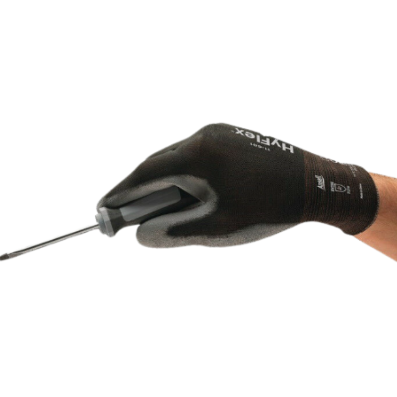 O Kit 12 Pares Luva Ansell HyFlex 11600 combina leveza, sensibilidade tátil e proteção mínima — toda feita para atividades que exigem precisão e controlo, como montagens finas, inspeções e ajuste de sistemas. Seu forro em náilon 15 gauge, ultra fresco e estirável, oferece movimento quase como se fosse a pele, enquanto o revestimento de poliuretano (PU) na palma proporciona aderência estável e durável, mesmo em ambientes secos ou com óleo leve.