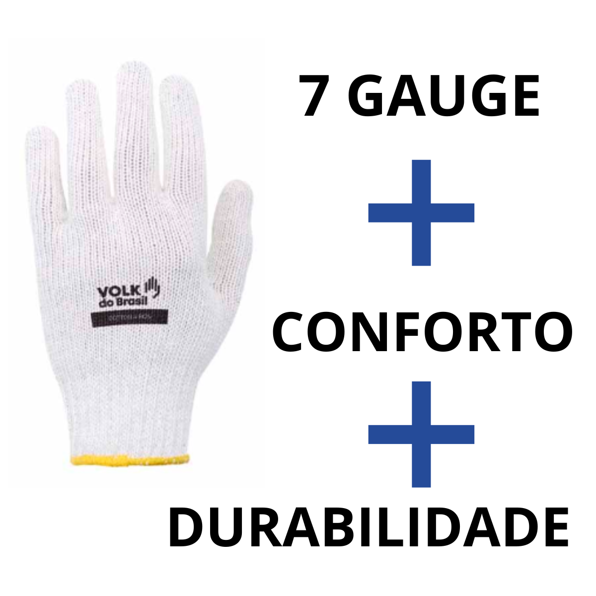 Essas características tornam a Luva Cotton Volk uma escolha ideal para atividades de baixo risco mecânico, que exigem conforto, economia e praticidade.