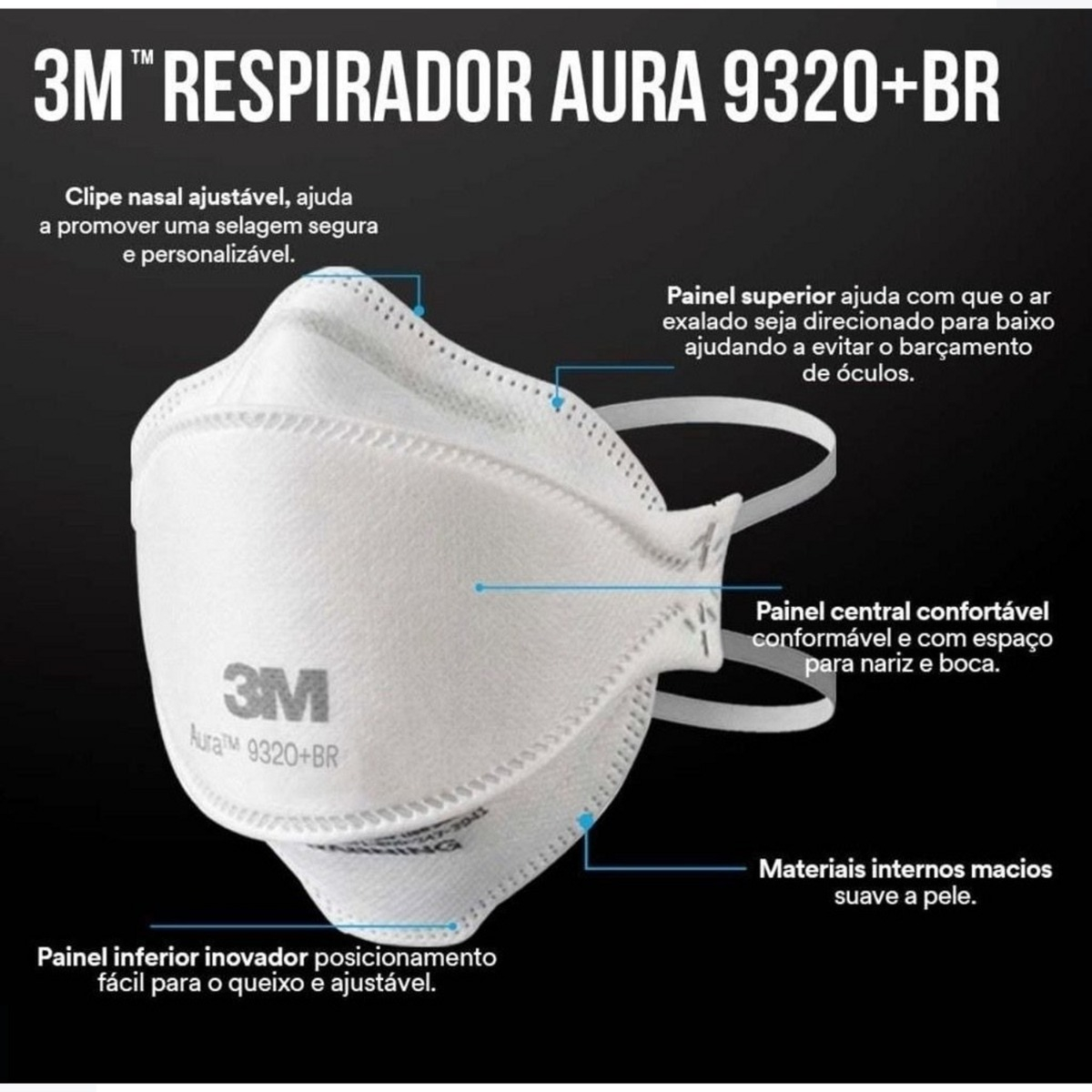 Seu design diferenciado e dobrável em três painéis permite ajuste anatômico ao rosto, proporcionando vedação eficiente e maior conforto mesmo em longas jornadas de trabalho. Além disso, a tecnologia Aura 3M direciona o fluxo de ar para baixo, ajudando a reduzir o embaçamento dos óculos de segurança — uma vantagem essencial para profissionais que trabalham em ambientes com alta concentração de poeiras ou durante atividades de precisão.