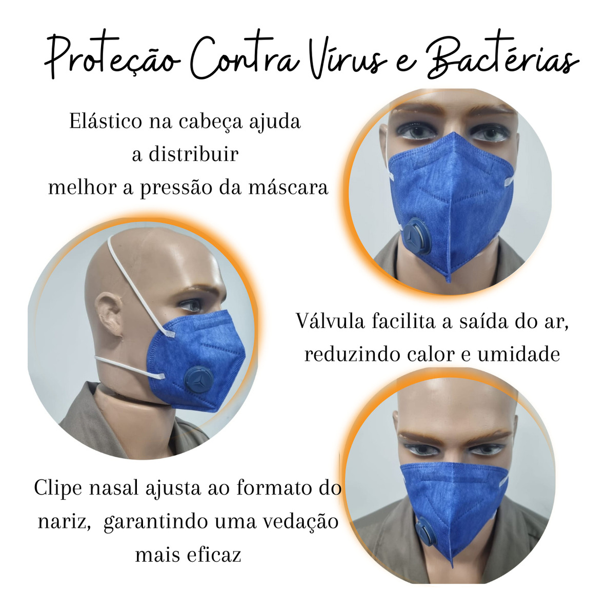 • Proteção Contra Vírus e Bactérias: Protege contra partículas microscópicas, vírus como o da COVID-19 e outras substâncias transmitidas pelo ar.