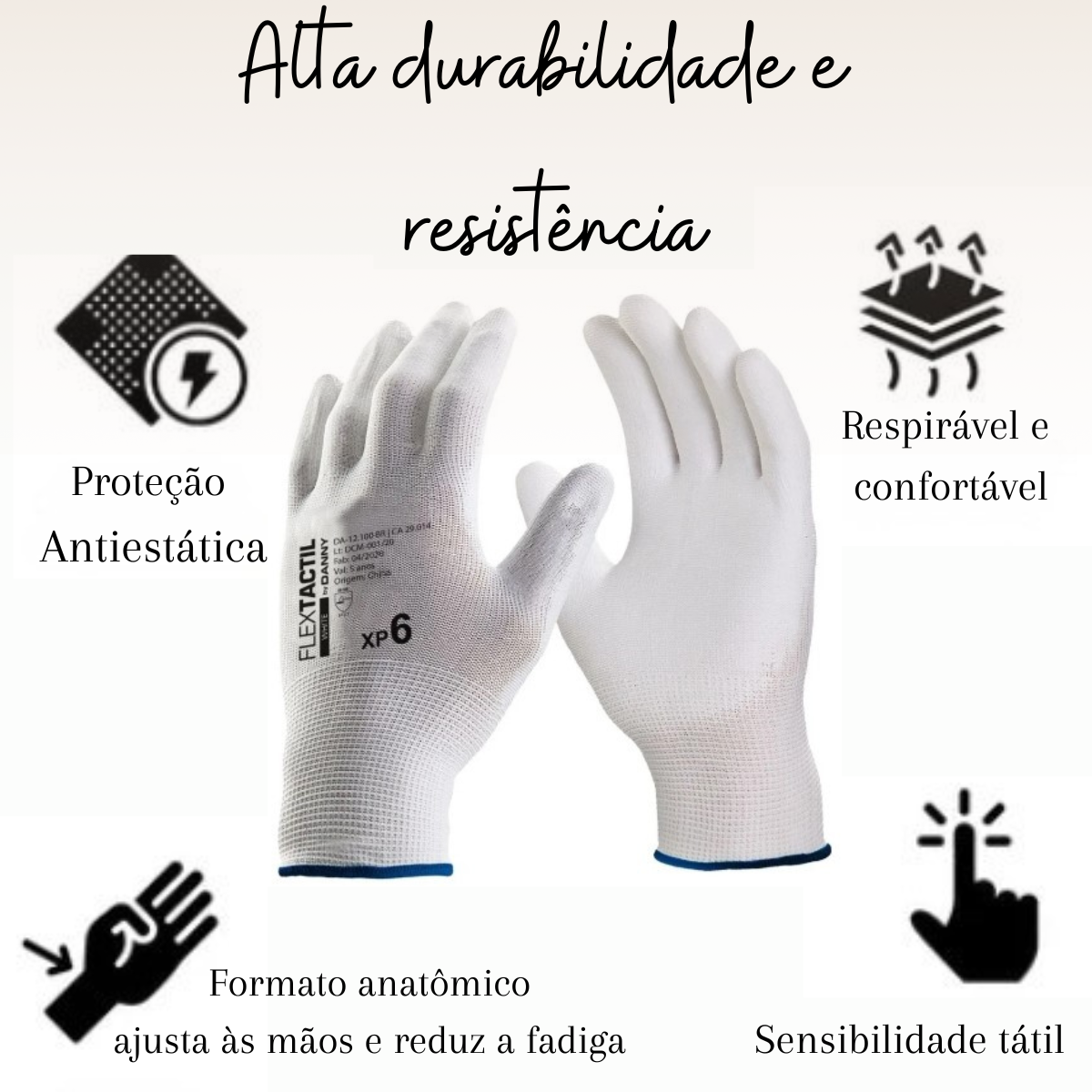 A Luva Flextáctil da marca Danny é a escolha ideal para quem busca alto desempenho, conforto e proteção nas atividades manuais. Confeccionada em nylon de alta resistência, possui banho de poliuretano (PU) na palma, face palmar dos dedos e ponta dos dedos, proporcionando excelente aderência, tato sensível e resistência à abrasão.