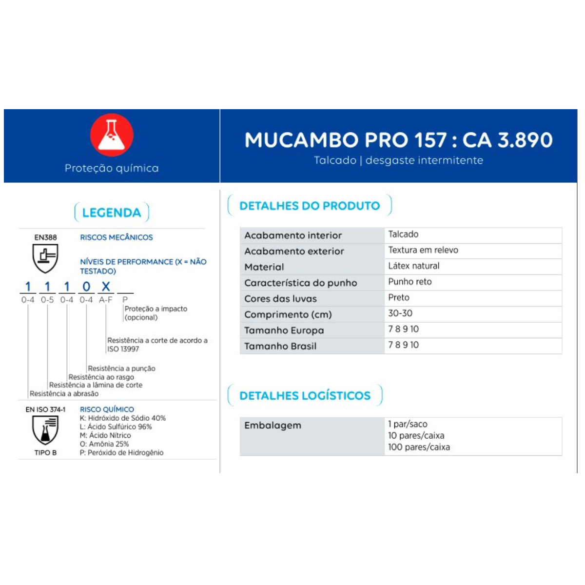 Especificações Técnicas – Luva Látex Pro 157 Preta Mucambo CA 3890