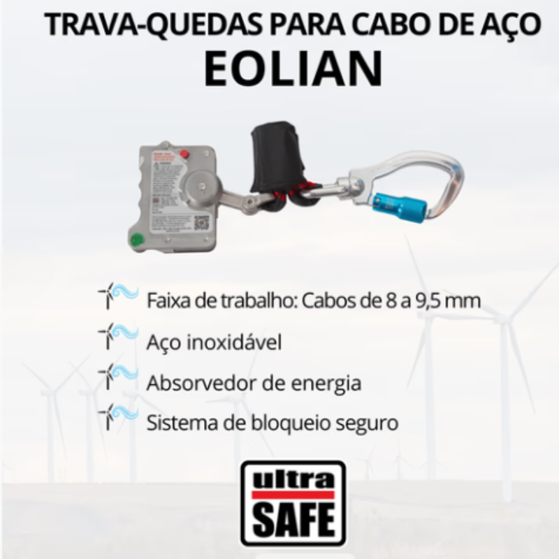 A Trava Quedas Eolian para Cabo de Aço 8mm a 9,5mm – UST50081A000 é um dispositivo de segurança projetado para máxima proteção em trabalhos verticais e de acesso por cabo.